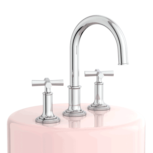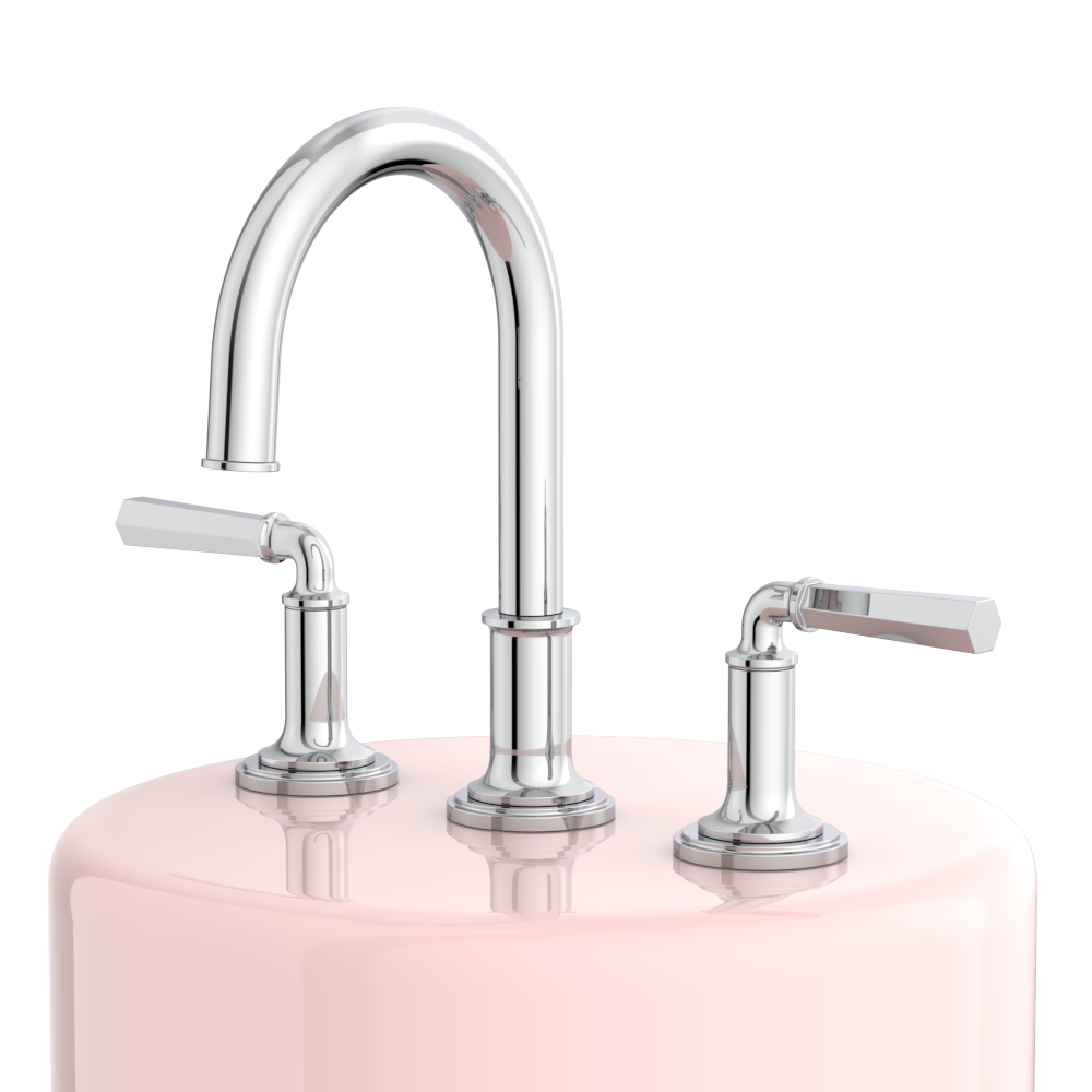 Stately and crisp lav suite. Designed in collaboration with Eveline Simard - Rohl